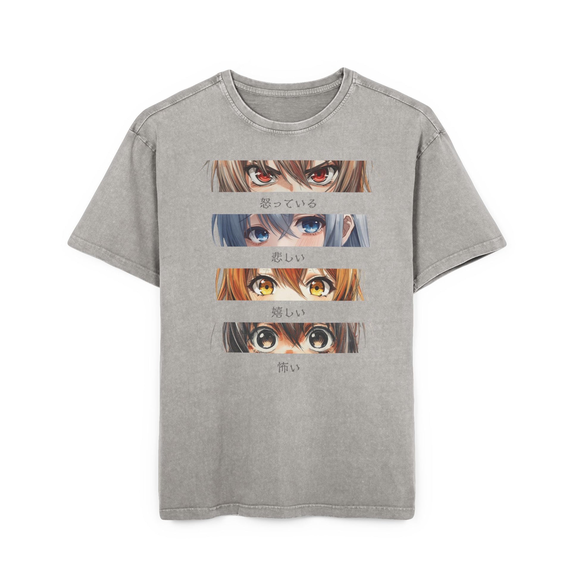 Angry/Sad/Happy/Scared Eyes Oversized Acid Washed T-Shirt