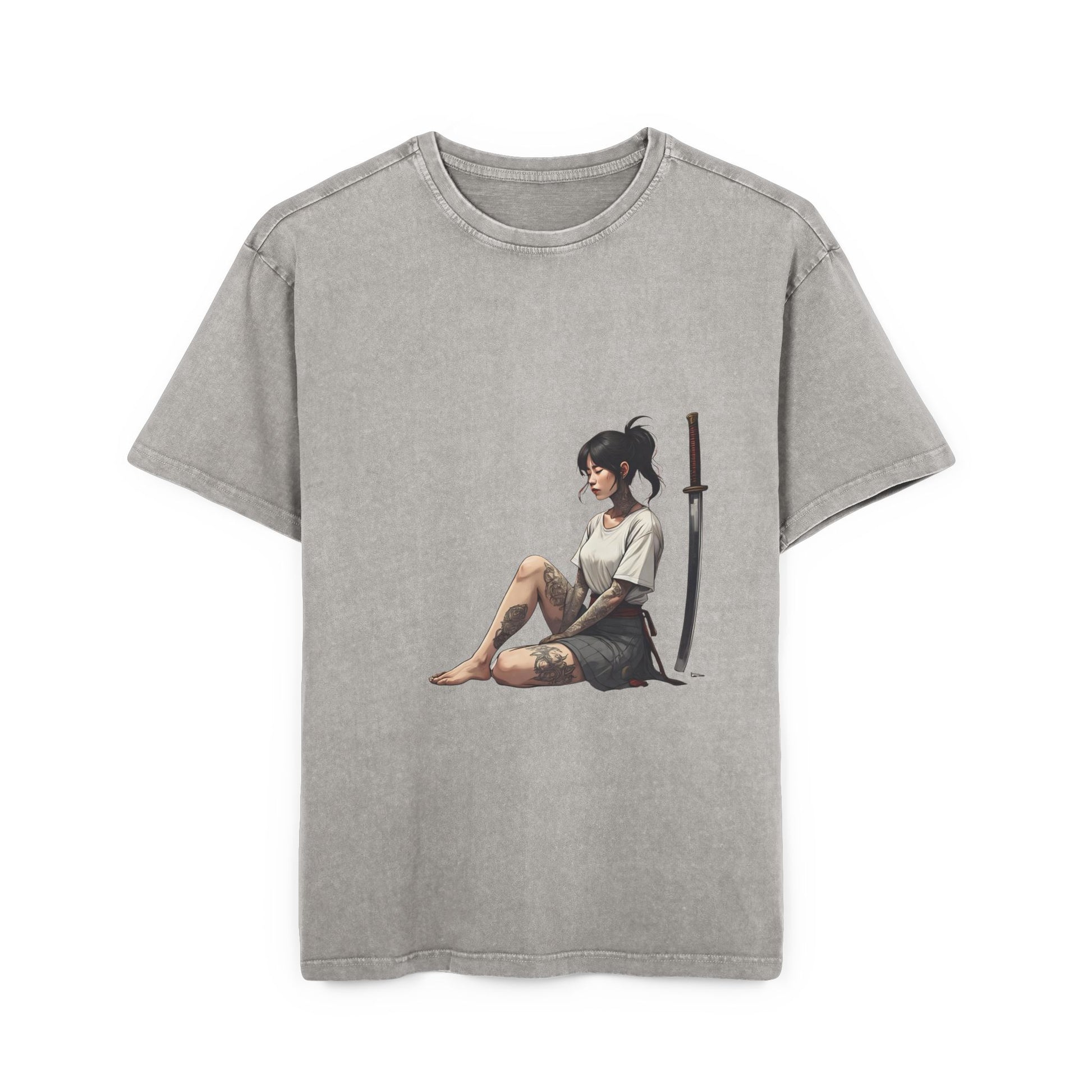 Resting Female Samurai Acid Washed Oversized T-Shirt